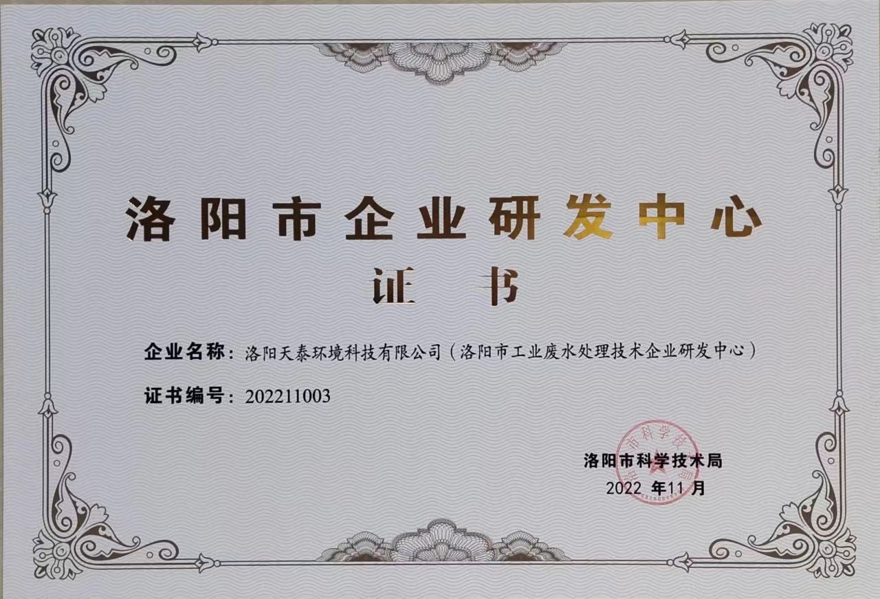 洛陽市企業研發中心證書