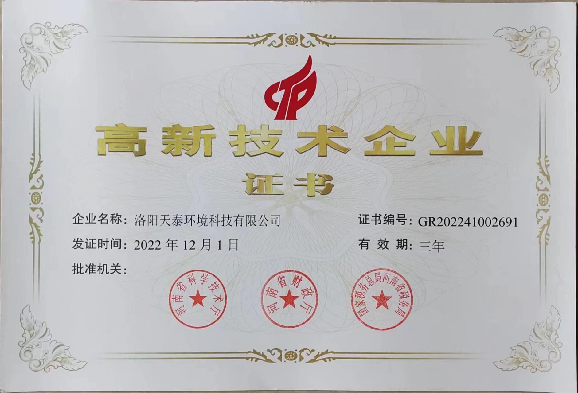 高新技術企業證書