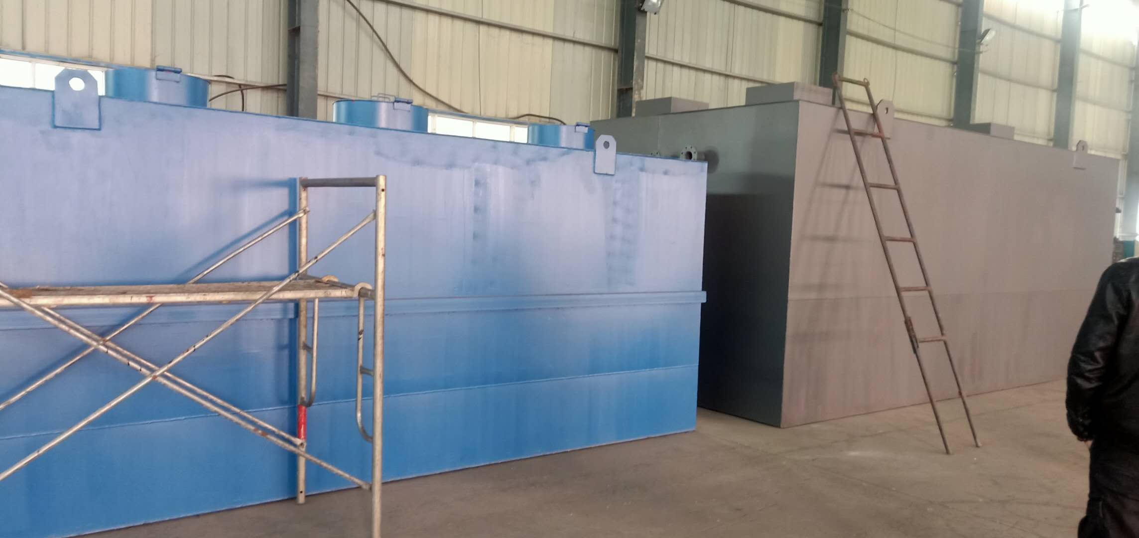 2、A/O工藝污水設備由五級水池構成,采用里襯玻璃鋼防腐4mm,防腐蝕使用壽命達到二十年之上。